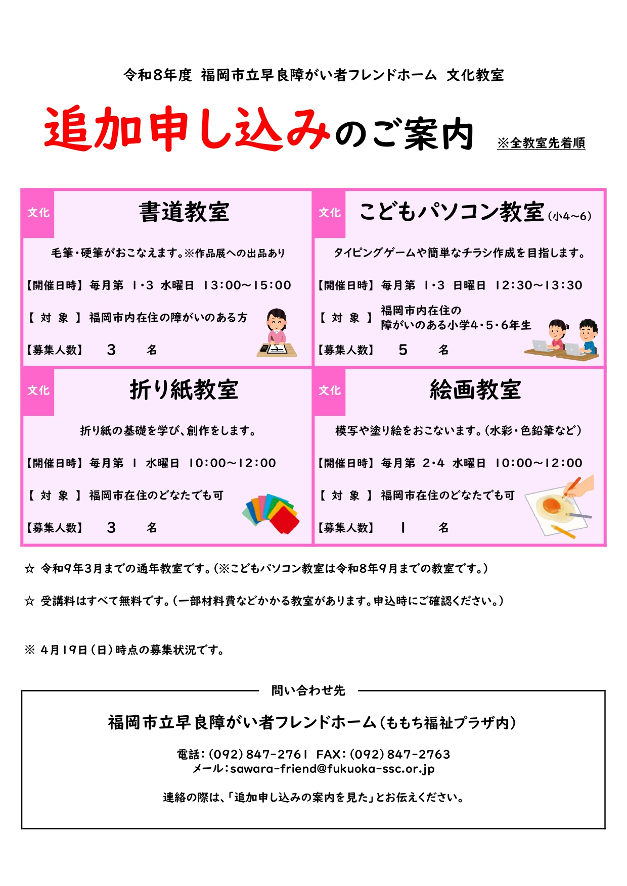 令和8年度 主催教室(追加募集について)