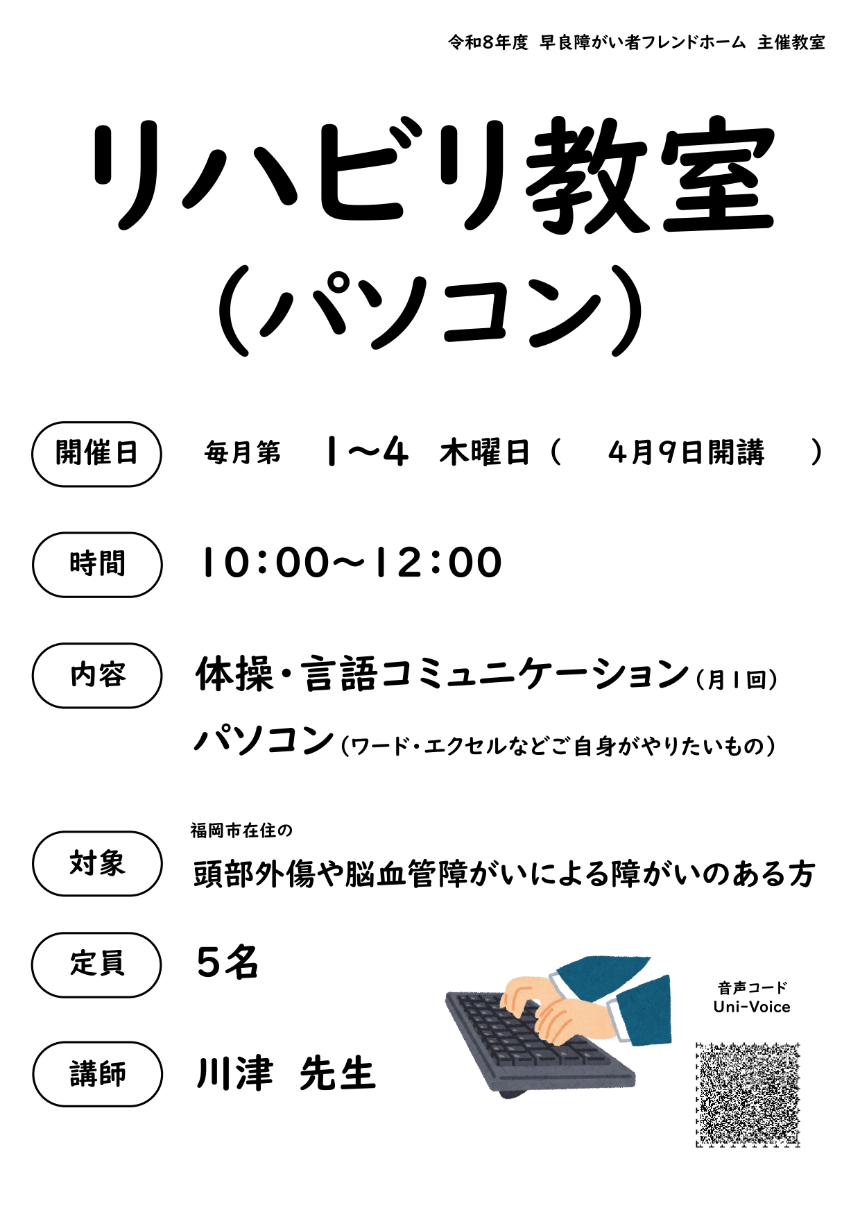 令和8年度 リハビリ教室(パソコン)のご案内