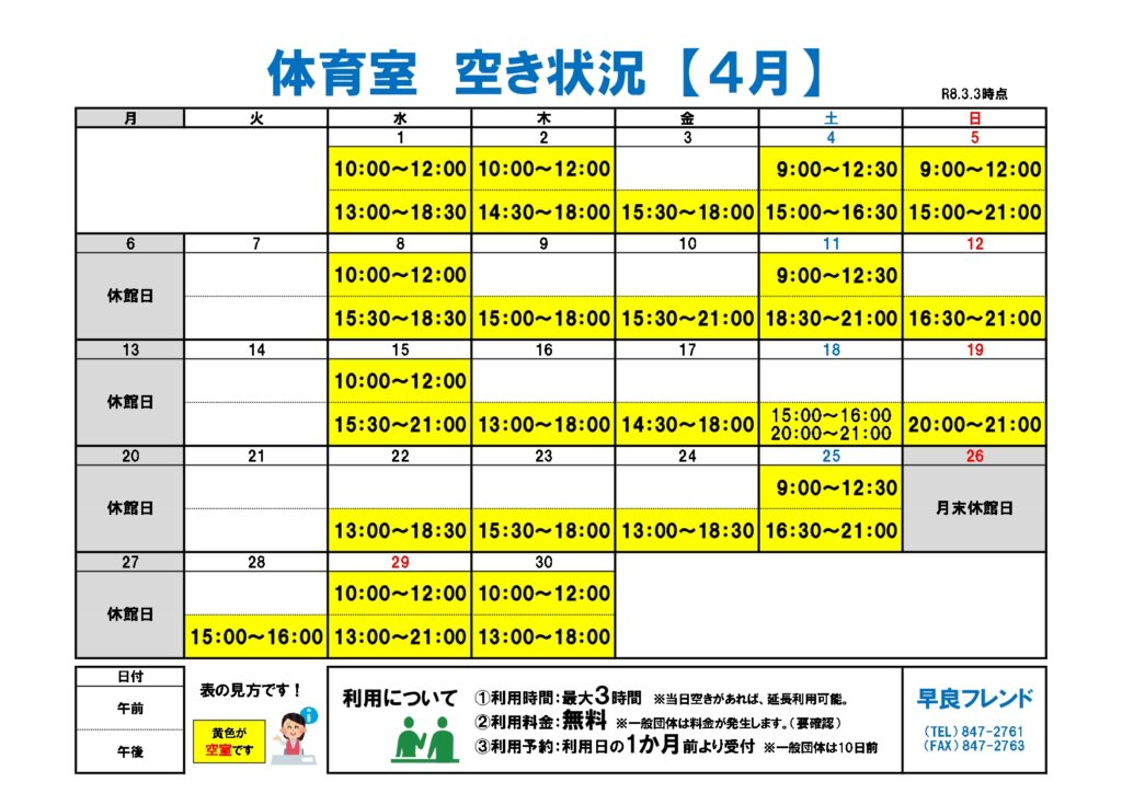 体育室の空き状況です